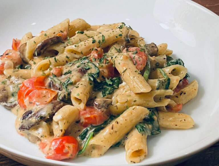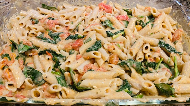 The cheese is definitely the star of this dish. Due to the popularity of this pasta, there was a run on vegan feta cheese. It was literally impossible to find at any store or market in my area. Having to settle for vegan mozzarella instead, I was hesitant on how it would turn out. Again, I was wrong. The mozzarella was a perfect substitute. I have since made it with vegan feta and they are both equally delicious.